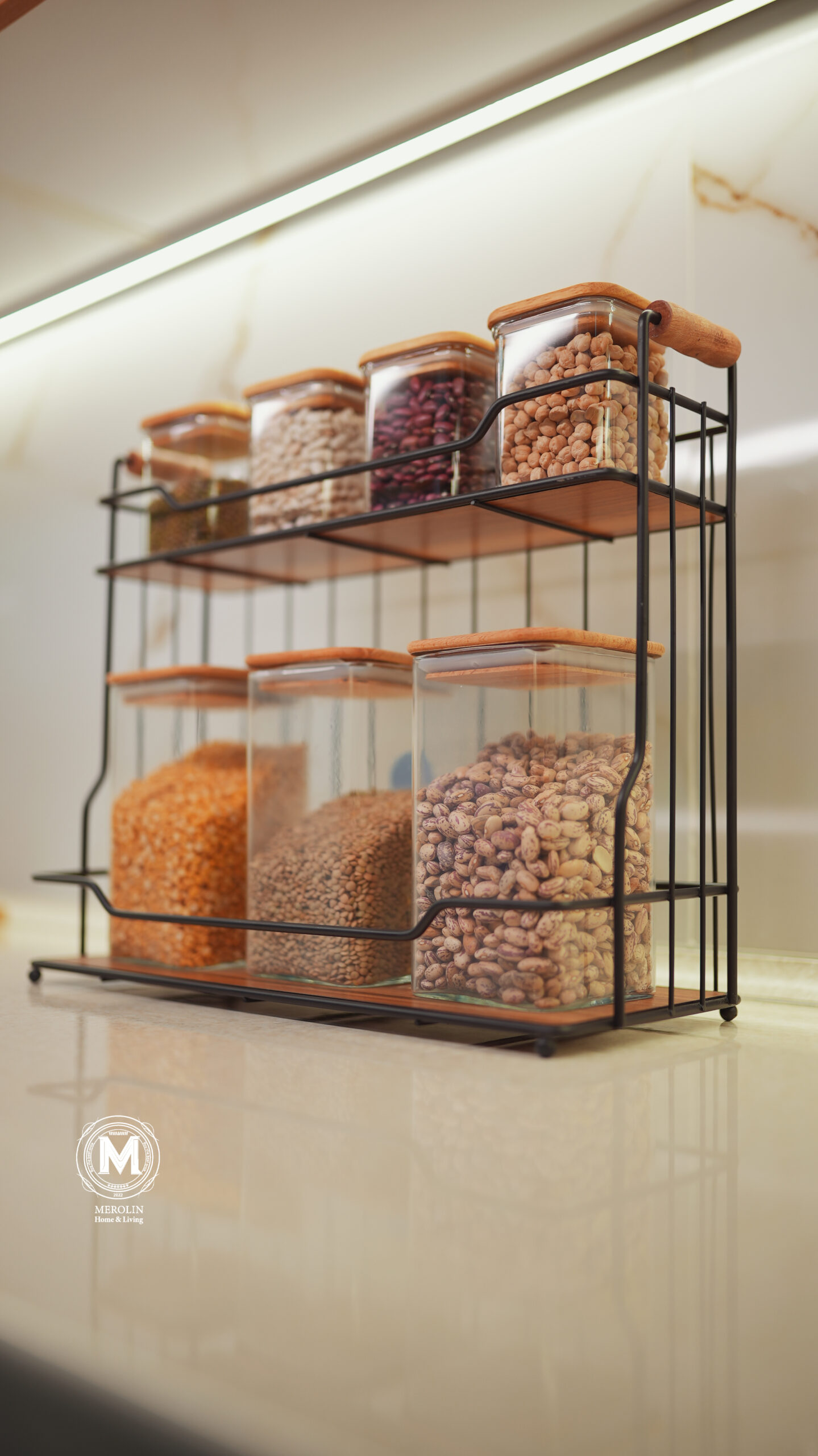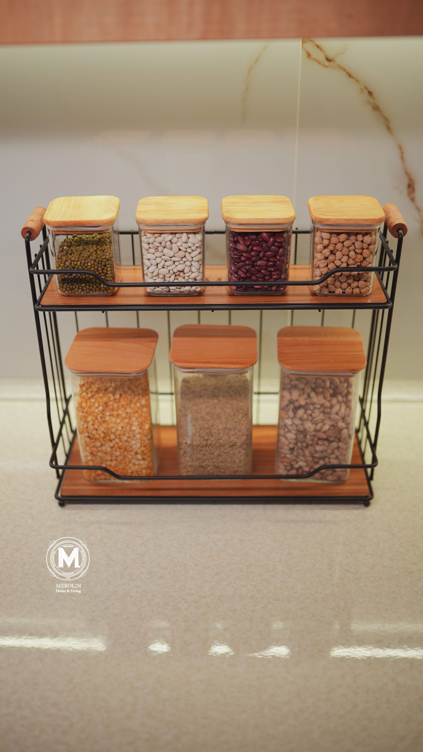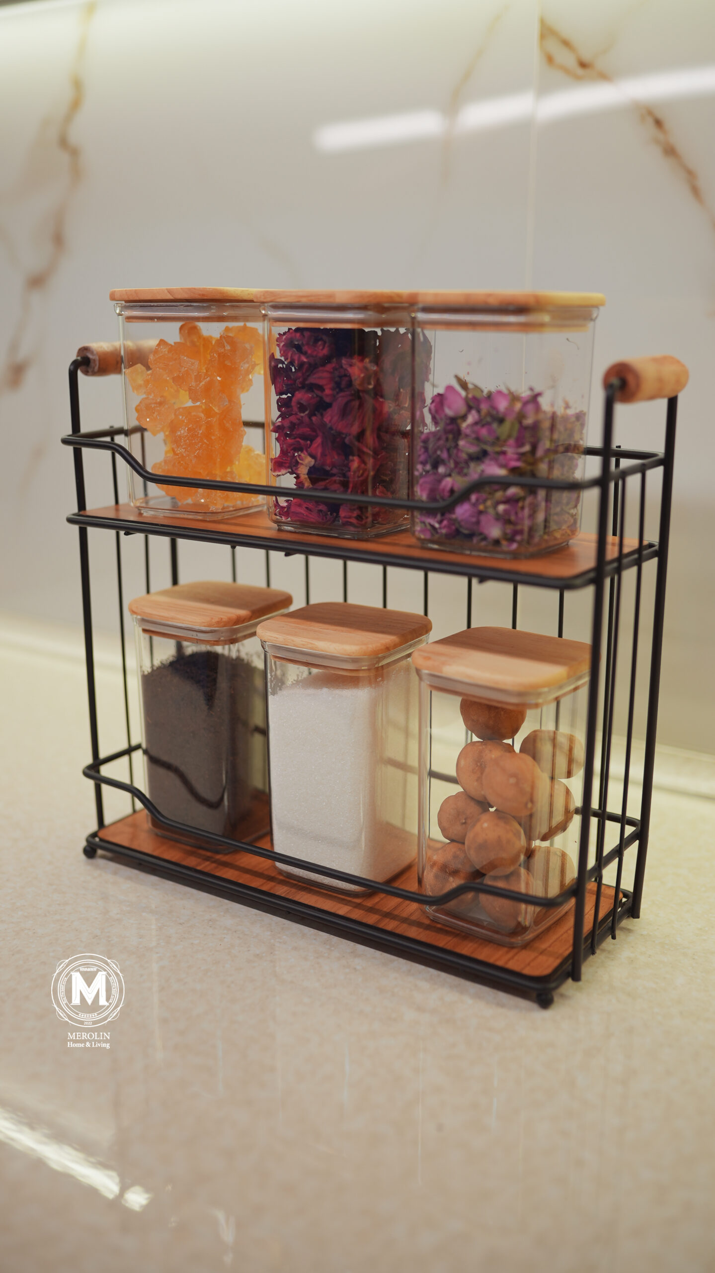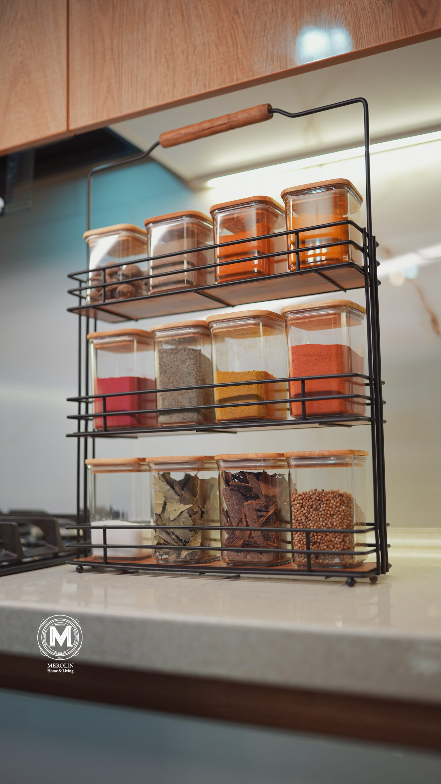 Shelf of jars and spices